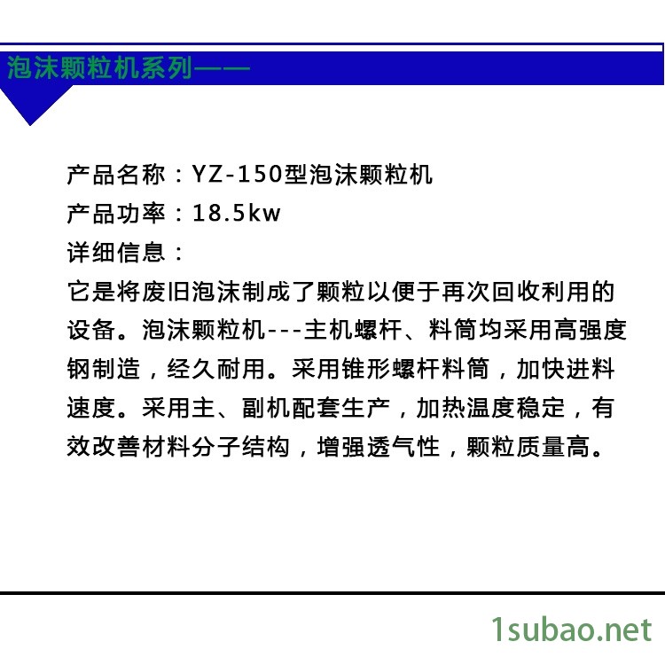 泡沫造粒機的特點是雙螺桿,這是新的泡沫再生造粒技術,全套的泡沫造粒機集合破碎、除雜、輸送、上料、拉絲、切粒為一體,操作簡便,性能穩定,廢舊泡沫直接破碎后通過管道送料進入主機濃縮自動牽引切成顆粒制品,整個生產過程采用自動控溫系統,顆粒顏色幾乎無改變,不老化,制造出的產品質量好,銷售價格高,整套泡沫造粒機僅需1~2個人即可操作。